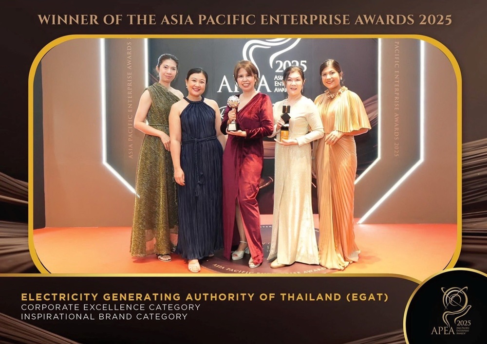 กฟผ. สร้างชื่อบนเวทีระดับภูมิภาคเอเชีย – แปซิฟิก คว้า 2 รางวัลเกียรติยศจากงาน Asia Pacific Enterprise Awards (APEA 2025) Regional Edition ในสาขา Corporate Excellence Award และ สาขาInspirational Brand Award ตอกย้ำความมุ่งมั่นในการขับเคลื่อนองค์การสู่ความเป็นเลิศ และการสร้างแบรนด์ที่มีพลังบวกต่อสังคม