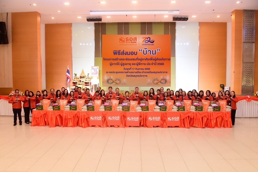 นายกมลภพ วีระพละ กรรมการผู้จัดการธนาคารอาคารสงเคราะห์ (ธอส.) เปิดเผยว่า ธอส. เดินหน้าตอบแทนสังคม ยกระดับคุณภาพชีวิตคนไทยให้ได้มีที่อยู่อาศัยเป็นของตนเอง สนับสนุนความเข้มแข็งของชุมชนให้สามารถพัฒนาตนเองได้อย่างยั่งยืน พร้อมส่งมอบบ้านให้แก่ประชาชน ภายใต้ “โครงการสร้างและซ่อมแซมที่อยู่อาศัย เพื่อผู้ด้อยโอกาส ผู้ยากไร้ ผู้สูงอายุ และผู้พิการ” โดยในปี 2568 ธอส. ได้ดำเนินการสร้างและซ่อมแซมบ้าน จำนวน 258 หลัง แบ่งเป็น สร้างบ้านใหม่ จำนวน 29 หลัง และซ่อมแซมบ้านจำนวน 229 หลัง ในวันนี้ ธอส. ได้จัดพิธีส่งมอบบ้านสร้างใหม่ จำนวน 1 หลัง และบ้านซ่อมแซม จำนวน 10 หลัง ในพื้นที่ตำบลบางเมือง อำเภอเมืองสมุทรปราการจังหวัดสมุทรปราการ ทั้งนี้ ธอส. ได้รับความร่วมมือจากเทศบาลตำบลบางเมือง จังหวัดสมุทรปราการ ในการคัดเลือกประชาชนกลุ่มเป้าหมายเพื่อเข้าร่วมโครงการฯ