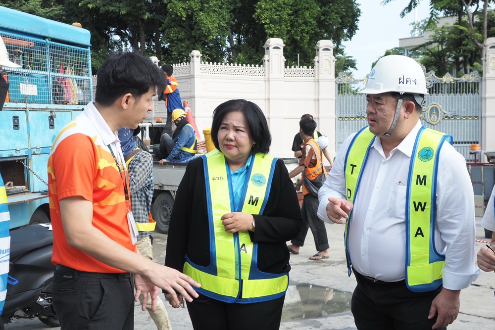 นางสาวสุวรา ทวิชศรี ผู้ว่าการการประปานครหลวง (กปน.) และคณะ ลงพื้นที่บริเวณถนนทรุด เพื่อตรวจสอบความเรียบร้อยจากการปรับปรุงระบบท่อประปาและอุปกรณ์ที่เกี่ยวข้อง หลังจากเปิดจ่ายน้ำเข้าพื้นที่ตั้งแต่เวลา 04.00 น. ที่ผ่านมา ซึ่งในช่วงเช้านี้บางพื้นที่น้ำประปาอาจไหลอ่อนบ้าง แต่สถานการณ์จะค่อย ๆ ดีขึ้น นอกจากนี้ ยังได้เข้าหารือกับผู้บริหาร โรงพยาบาลวชิรพยาบาล เพื่อสอบถามถึงการให้บริการน้ำประปารองรับการให้บริการประชาชน ซึ่ง กปน. ยืนยันพร้อมเสริมเสถียรภาพการให้บริการให้เพียงพอกับความต้องการได้อย่างต่อเนื่อง