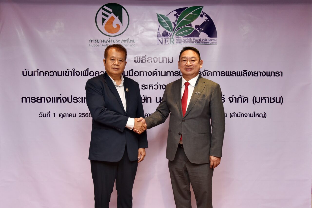 นายชูวิทย์ จึงธนสมบูรณ์ ประธานเจ้าหน้าที่บริหาร บริษัท นอร์ทอีส รับเบอร์ จำกัด (มหาชน) หรือ NER ผู้ดำเนินธุรกิจผลิตและจำหน่าย ยางแผ่นรมควัน ยางแท่ง ยางผสม และสินค้าปลายน้ำแผ่นยางพาราปูพื้นคุณภาพสูง เพื่อจำหน่ายไปยังผู้ผลิตในอุตสาหกรรมยานยนต์ กลุ่มผู้ค้าคนกลาง ทั้งในประเทศและต่างประเทศเปิดเผยว่า บริษัทฯ ได้ร่วมลงนามบันทึกความเข้าใจ(MOU) กับการยางแห่งประเทศไทย (กยท.) เพื่อความร่วมมือด้านการบริหารจัดการผลผลิตยางพารา โดยมี นายเพิก เลิศวังพง รักษาการแทนผู้ว่าการการยางแห่งประเทศไทย ร่วมลงนาม เพื่อร่วมกันสร้างโอกาสทางเศรษฐกิจและรายได้ที่มั่นคงให้เกษตรกรไทยในระยะยาวพร้อมสนับสนุนการพัฒนาอุตสาหกรรมยางพาราอย่างยั่งยืน ณ การยางแห่งประเทศไทย (สำนักงานใหญ่) กรุงเทพมหานคร
