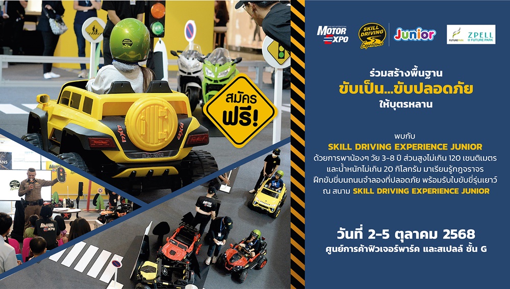 ผู้ปกครองสามารถพาบุตรหลานของท่านที่มีอายุ 3-8 ปี ความสูงไม่เกิน 120 เซนติเมตร และน้ำหนักไม่เกิน 20 กิโลกรัม ไปเข้าร่วมกิจกรรมได้ฟรี ที่ลาน Zpotlight ฟิวเจอร์ พาร์ค และ สเปลล์ ชั้น G ระหว่างวันที่ 2-5 ตุลาคม 2568 และสามารถติดตามรายละเอียดเพิ่มเติมได้ที่ facebook.com/skilldriving