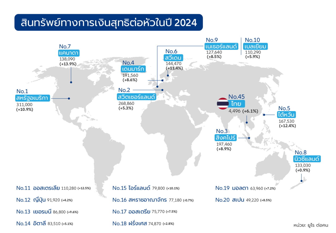 - ปี 2024 เป็นอีกหนึ่งปีทองของสินทรัพย์การเงินภาคครัวเรือนทั่วโลก เติบโต 8.7%