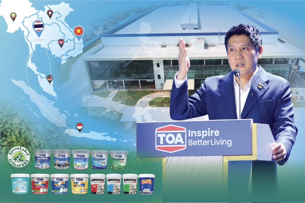 นายจตุภัทร์ ตั้งคารวคุณ ประธานเจ้าหน้าที่บริหาร บมจ.ทีโอเอ เพ้นท์ฯ เปิดเผยว่า การเปิดตลาดในอาเซียน โดยการเข้าสู่เวียดนามเมื่อ 30 ปีก่อนเป็นการตัดสินใจเชิงกลยุทธ์ที่สำคัญ ที่สะท้อนวิสัยทัศน์ของการเป็นผู้นำที่ “คิดก่อน ทำก่อน” โดยการนำความเชี่ยวชาญและนวัตกรรมที่สะสมในไทยมาขยายตลาดในเวียดนาม ประกอบกับปัจจุบันตลาดเวียดนามนับเป็นโอกาสทองของอุตสาหกรรมสีที่กำลังเติบโตจากการพัฒนาโครงสร้างพื้นฐาน ภาคอสังหาริมทรัพย์ที่เพิ่มขึ้น และภาคการผลิตอุตสาหกรรมฟื้นตัวแข็งแกร่ง ส่งผลให้มีการเติบโตอย่างต่อเนื่อง และกลายเป็น Big Player ในอุตสาหกรรมสีและเคมีภัณฑ์ก่อสร้างในภูมิภาคเอเชียตะวันออกเฉียงใต้