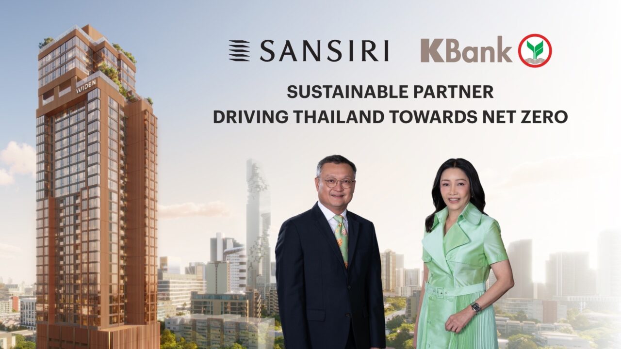 ​นางสาวขัตติยา อินทรวิชัย ประธานเจ้าหน้าที่บริหาร ธนาคารกสิกรไทย และนายอุทัย อุทัยแสงสุข กรรมการผู้จัดการใหญ่ บริษัท แสนสิริ จำกัด (มหาชน) แถลงความร่วมมือการสนับสนุนสินเชื่อเพื่อสิ่งแวดล้อม หรือกรีนโลนประเภท Pre-Finance มูลค่า 4,000 ล้านบาทสำหรับ 3 โครงการต้นแบบคอนโดมิเนียมมาตรฐานใหม่ ซึ่งแสนสิริเป็นบริษัทแรกของธนาคารกสิกรไทยที่ใช้เกณฑ์การประเมินสินเชื่อที่เข้มข้นสอดคล้องตาม Thailand Taxonomy และผ่านหลักเกณฑ์การประเมินสินเชื่อเพื่อสิ่งแวดล้อมหรือกรีนโลนจากธนาคารกสิกรไทย สู่ก้าวสำคัญที่สะท้อนถึงบทบาทBank of Sustainability ในการผลักดันให้คู่ค้ามุ่งดำเนินธุรกิจเพื่อความยั่งยืน ณ ธนาคารกสิกรไทย สำนักงานใหญ่ อาคารพหลโยธิน เมื่อเร็วๆ นี้
