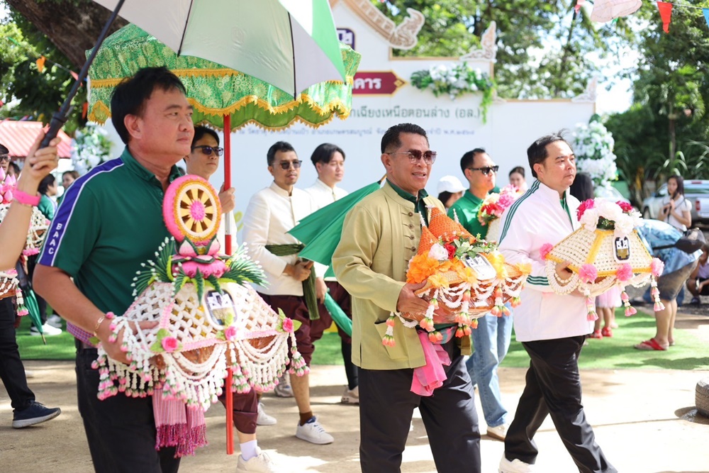 นายกษาปณ์ เงินรวง กรรมการธนาคารเพื่อการเกษตรและสหกรณ์การเกษตร (ธ.ก.ส.) พร้อมด้วยนายณรงค์ สวรรค์โพธิ์พันธุ์ รองผู้จัดการ ธ.ก.ส. นายโกเมนทร์ โคตรศรีวงศ์ นายสุวินัย ไทยลาวัลย์ และนายธารา ศรีหะมาศ ผู้ช่วยผู้จัดการ ธ.ก.ส. ร่วมกับคณะผู้บริหาร พนักงาน ธ.ก.ส. ลูกค้าธนาคาร และประชาชนผู้มีจิตศรัทธาในพื้นที่ถวายผ้ากฐินสามัคคี ธ.ก.ส. ประจำปี 2568 ณ วัดธาตุ ตำบลบ้านเป้า อำเภอเกษตรสมบูรณ์ จังหวัดชัยภูมิ เพื่อนำไปถวายจตุปัจจัยไทยธรรม สมทบทุนในการสร้างศาลาอเนกประสงค์ รวมถึงบูรณปฏิสังขรณ์เสนาสนะ และสาธารณูปโภคภายในวัด เพื่ออำนวยความสะดวกให้กับประชาชนผู้มีจิตศรัทธาในการทำกิจกรรมทางศาสนาต่อไป