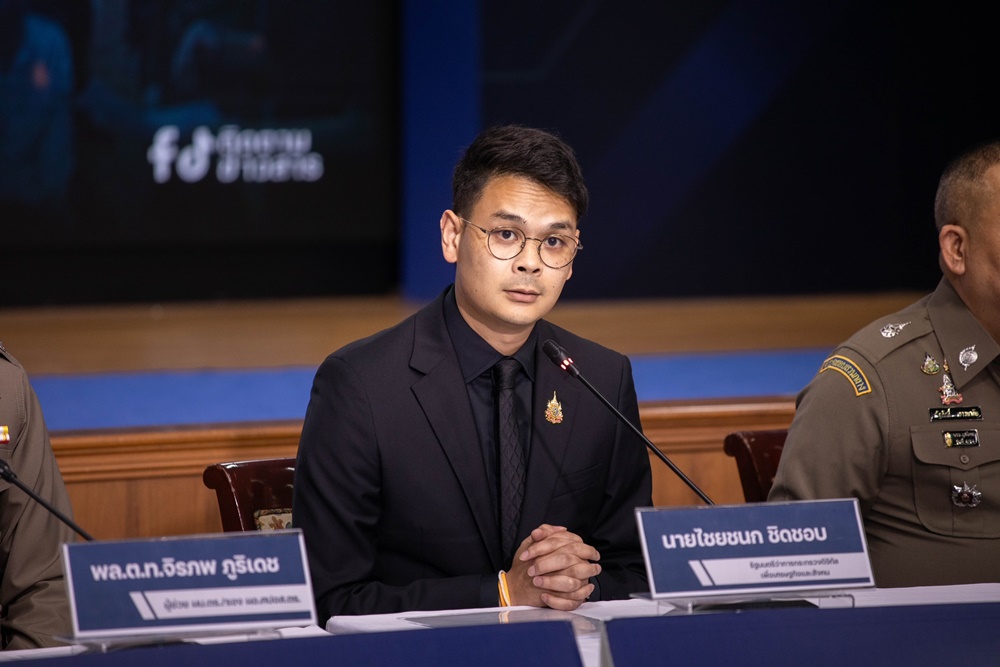 นายไชยชนก ชิดชอบ รัฐมนตรีว่าการกระทรวงดิจิทัลเพื่อเศรษฐกิจและสังคม (ดีอี) เป็นประธานการแถลงผลการปฏิบัติงานของคณะกรรมการอำนวยการป้องกันและปราบปรามการกระทำความผิดอาชญากรรมทางเทคโนโลยี โดยมี พล.ต.ท.จิรภพ ภูริเดช ผู้ช่วยผู้บัญชาการตำรวจแห่งชาติ และรองผู้อำนวยการศูนย์ปราบปรามอาชญากรรมทางเทคโนโลยีสารสนเทศ (ศปอส.ตร.) พล.ต.ท. ณัฐศักดิ์ เชาวนาศัย ผู้บัญชาการตำรวจสอบสวนกลาง (ผบช.ก.) และพล.ต.ท.สุรพล เปรมบุตร ผู้บัญชาการตำรวจสืบสวนสอบสวนอาชญากรรมทางเทคโนโลยี (ผบช.สอท.) ร่วมด้วย ณ กองบัญชาการตำรวจสอบสวนกลาง