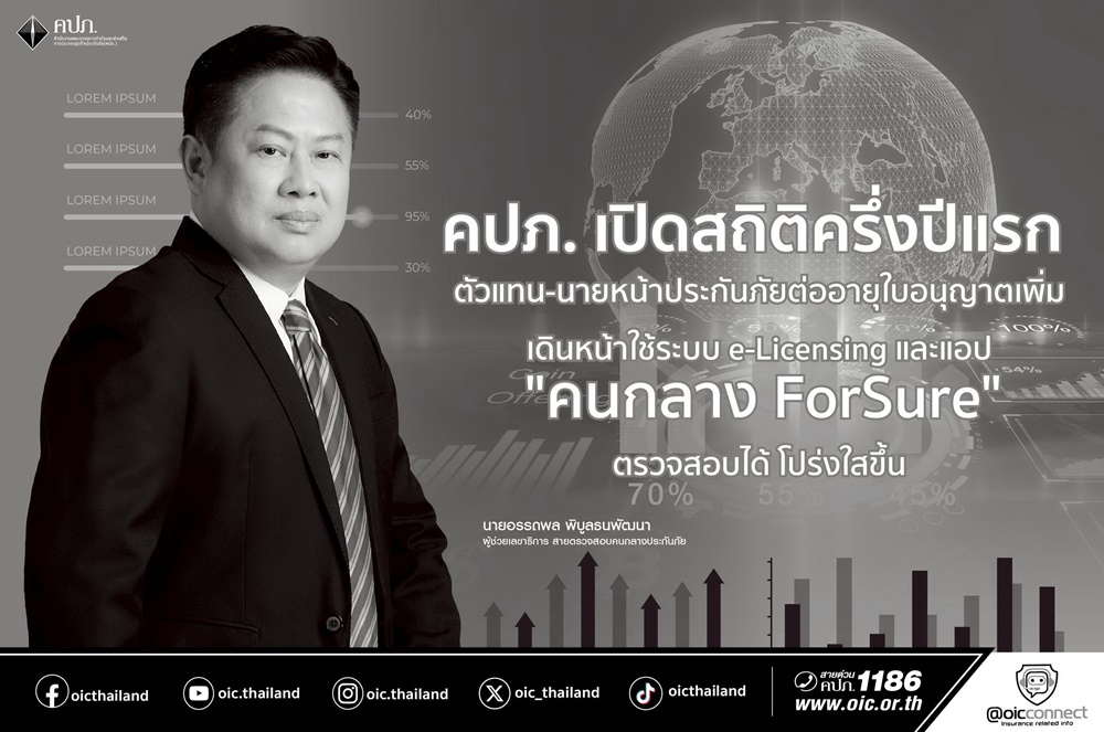 คปภ.เปิดสถิติครึ่งปีแรก ตัวแทน-นายหน้าประกันภัยต่ออายุใบอนุญาตเพิ่มเดินหน้าใช้ระบบ e-Licensing และแอป“คนกลาง ForSure”