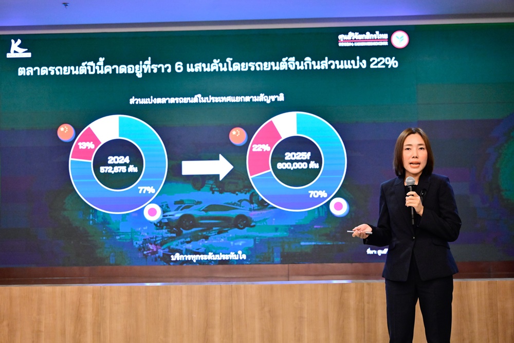 ศูนย์วิจัยกสิกรไทย มองอุตสาหกรรมยานยนต์ไทยต้องรับมือกับมาตรการภาษีนำเข้าของสหรัฐฯ การแข่งขันจากค่ายรถจีนที่รุกขยายตลาด และการยกระดับมาตรฐานด้านสิ่งแวดล้อมและความปลอดภัยของคู่ค้า ซึ่งท้าทายการปรับตัวและความสามารถในการแข่งขันของอุตสาหกรรมไทยในระยะยาว