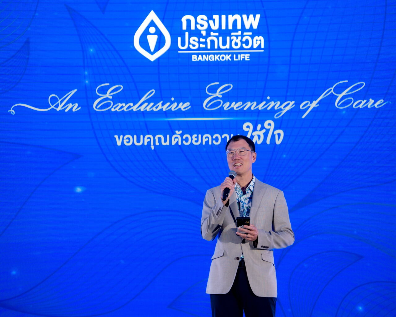 “กรุงเทพประกันชีวิต จัดงานครั้งนี้ขึ้น เพื่อขอบคุณลูกค้าคนสำคัญที่มอบความไว้วางใจทำประกันชีวิตกับบริษัท พร้อมส่งมอบความใส่ใจผ่านงาน An Exclusive Evening of Care ที่บริษัทใส่ใจจัดทำขึ้น บริษัทฯ พร้อมมุ่งมั่นที่จะพัฒนาและสร้างสรรค์บริการที่ดีที่สุด เพื่อให้ลูกค้าได้รับประสบการณ์ที่เหนือความคาดหมาย และเติบโตไปด้วยกันอย่างมั่นคงในระยะยาว” โชน กล่าว
