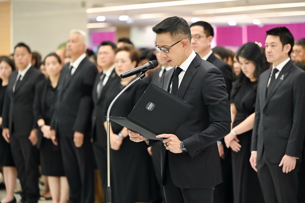 ในโอกาสนี้ นายสาระ ล่ำซำ ประธานเจ้าหน้าที่บริหาร ได้กล่าวถวายความอาลัย พร้อมกันนี้ คณะผู้บริหารและพนักงาน ได้พร้อมใจกันยืนสงบนิ่ง และลงนามในสมุดถวายความอาลัย เพื่อแสดงความจงรักภักดี และน้อมรำลึกถึงพระมหากรุณาธิคุณที่ทรงมีต่อพสกนิกรชาวไทย ตลอดระยะเวลาที่ทรงปฏิบัติ พระราชกรณียกิจน้อยใหญ่นานัปการ ตามที่ทรงตั้งพระราชปณิธานอย่างแน่วแน่ ในการบำเพ็ญ พระราชกรณียกิจมาตลอดพระชนม์ชีพ เพื่อบำบัดทุกข์บำรุงสุข แก่พสกนิกรชาวไทยในทุกหนแห่ง อีกทั้ง ยังทรงส่งเสริมงานด้านศิลปวัฒนธรรม หัตถศิลป์ไทย ตลอดจนการอนุรักษ์ธรรมชาติและสิ่งแวดล้อม รวมทั้งการพัฒนาคุณภาพชีวิตของประชาชนในถิ่นทุรกันดาร ซึ่งสะท้อนถึงพระเมตตาของ สมเด็จพระนางเจ้าสิริกิติ์ พระบรมราชินีนาถ พระบรมราชชนนีพันปีหลวง สมดังพระราชสมัญญา “พระแม่ของแผ่นดิน”