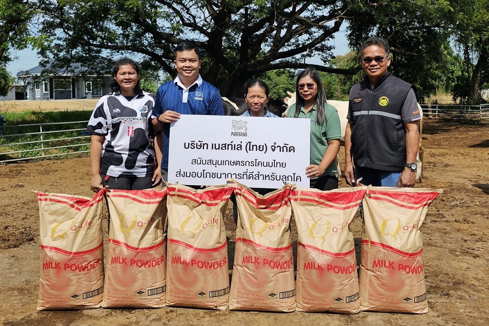บริษัท เนสท์เล่ (ไทย) จำกัด สนับสนุนเกษตรกรโคนมไทยอย่างต่อเนื่อง โดยมอบอาหารที่มีคุณค่าทางโภชนาการสูงเพื่อใช้เลี้ยงลูกโค ให้แก่สหกรณ์โคนมพิมาย สหกรณ์โคนมชุมพวง และสหกรณ์โคนมครบุรี จ.นครราชสีมา ด้วยเป้าหมายเพื่อสนับสนุนการเลี้ยงลูกโคด้วยโภชนาการที่ดี ให้เจริญเติบโตเป็นแม่โคที่มีศักยภาพ นำไปสู่การยกระดับคุณภาพและปริมาณน้ำนมดิบ สร้างความมั่นคงทางรายได้ให้กับเกษตรกรอย่างยั่งยืน