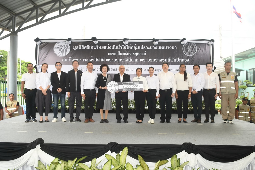 คุณสรสินธุ ไตรจักรภพ ประธานกรรมการมูลนิธิศรีเทพไทย กล่าวว่า “มูลนิธิศรีเทพไทยก่อตั้งขึ้นด้วยเจตนารมณ์ที่จะสนับสนุนและช่วยเหลือกลุ่มเปราะบาง โดยเฉพาะเด็กและคนพิการ เพื่อให้ได้รับโอกาสที่เท่าเทียมและลดความเหลื่อมล้ำทางสังคม การจัดกิจกรรมในครั้งนี้มูลนิธิศรีเทพไทยได้ร่วมมือกับสำนักงานเขตบางนาในการดูแลประชาชนกลุ่มเปราะบางในพื้นที่ เพื่อถวายเป็นพระราชกุศลแด่สมเด็จพระนางเจ้าสิริกิติ์ พระบรมราชินีนาถ พระบรมราชชนนีพันปีหลวง ด้วยความสำนึกในพระมหากรุณาธิคุณอย่างหาที่สุดมิได้ อีกทั้งสะท้อนถึงความมุ่งมั่นของมูลนิธิศรีเทพไทยในการเป็นส่วนหนึ่งของสังคมแห่งการแบ่งปันและการดูแลกัน เพื่อให้ทุกคนในสังคมได้มีคุณภาพชีวิตที่ดีขึ้นอย่างยั่งยืน ภายในงานคณะผู้บริหารมูลนิธิศรีเทพไทย, ครอบครัวตระกูลไตรจักรภพ, ผู้บริหารจากบริษัทในกลุ่มศรีเทพไทย และประชาชนในพื้นที่ ร่วมน้อมถวายความอาลัย  สมเด็จพระนางเจ้าสิริกิติ์ พระบรมราชินีนาถ พระบรมราชชนนีพันปีหลวง ก่อนจัดกิจกรรมส่งมอบเงินช่วยเหลือให้กับกลุ่มเปราะบาง จำนวนกว่า 800 คน และส่งมอบข้าวสารจำนวน 2,000 กิโลกรัม ให้แก่ BKK Food Bank เขตบางนา เป็นจำนวนเงินรวมทั้งสิ้นกว่า 1,000,000 บาท มูลนิธิศรีเทพไทยจึงหวังเป็นอย่างยิ่งว่าน้ำใจแห่งการแบ่งปันครั้งนี้จะช่วยเติมพลังและปลอบประโลมจิตใจให้คนไทยทุกคนก้าวผ่านช่วงเวลาแห่งความโศกเศร้านี้ไปด้วยกัน”