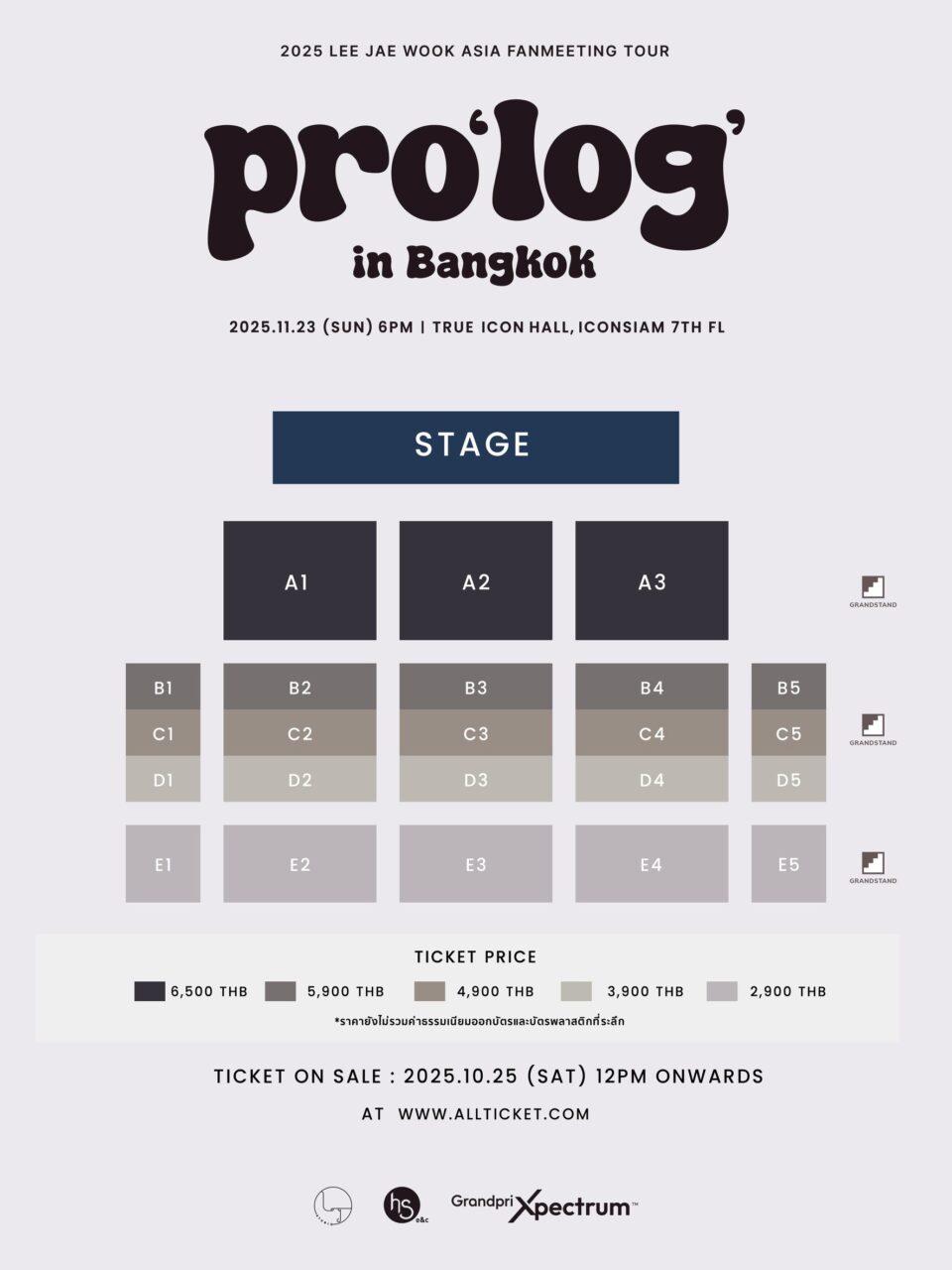สำหรับบัตรเข้าชมงานเปิดจำหน่ายแล้ววันนี้ผ่านทาง เคาน์เตอร์เซอร์วิสออลล์ทิคเก็ต ในร้าน 7-Eleven ทุกสาขาทั่วประเทศ และทางเว็บไซต์ www.allticket.com/event/LEEJAEWOOK_prolog_in_Bangkok ราคาบัตรมีให้เลือกตั้งแต่ 6,500 / 5,900 / 4,900 / 3,900 และ 2,900 บาท พร้อมสิทธิพิเศษมากมายสำหรับผู้เข้าร่วมงาน สามารถติดตามรายละเอียดเพิ่มเติมได้ทางทุกช่องทางโซเชียลมีเดียของ “Grandprix Xpectrum” บนทุกแพลตฟอร์ม