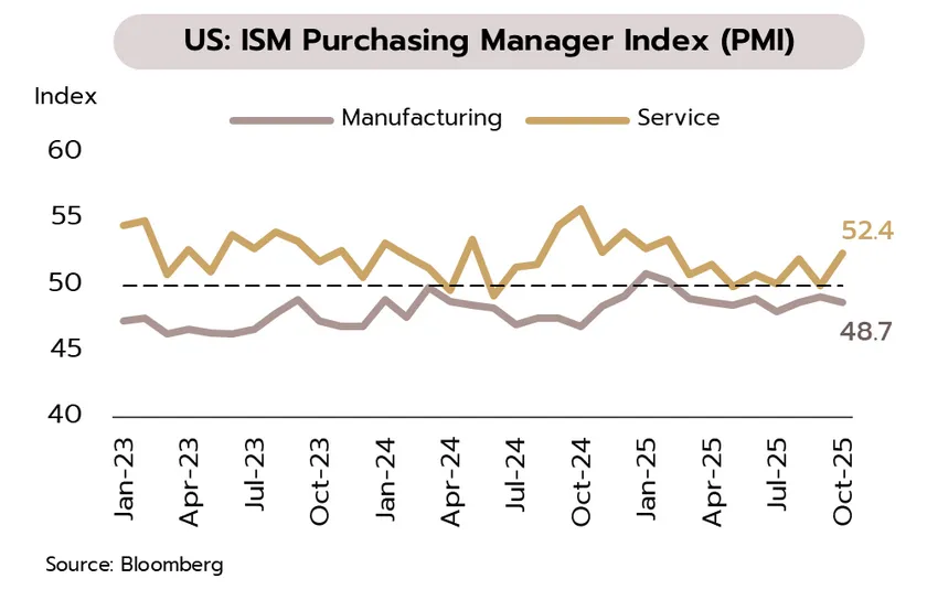 แม้ว่าสภาคองเกรสสามารถบรรลุข้อตกลงงบประมาณและช่วยให้หน่วยงานราชการกลับมาเปิดทำการได้ แต่เป็นเพียงการจัดสรรงบชั่วคราวเพื่อให้รัฐบาลทำงานได้จนถึงสิ้นเดือนมกราคม ท่ามกลางความขัดแย้งที่ยังคงมีอยู่ อาจนำไปสู่ Government Shutdown ได้อีกครั้งในช่วงต้นปีหน้า ขณะเดียวกันข้อมูลเศรษฐกิจสำคัญ เช่น อัตราเงินเฟ้อ การจ้างงาน รวมถึงยอดค้าปลีก ที่จะทยอยรายงานหลังการเปิดหน่วยงานราชการ จะช่วยให้การประเมินทิศทางเศรษฐกิจและนโยบายการเงินชัดเจนมากขึ้น อย่างไรก็ตาม ยังต้องจับตาทิศทางเงินเฟ้อหลังทรัมป์สั่งยกเว้นภาษีนำเข้าให้กับสินค้าเกษตรและอาหารหลายรายการ เช่น กาแฟ โกโก้ กล้วย และเนื้อวัว เพื่อบรรเทาค่าครองชีพ ทั้งนี้ อัตราเงินเฟ้อในปัจจุบันอยู่ที่ 3% ซึ่งยังสูงกว่าเป้าหมายของเฟดที่ 2% เป็นปัจจัยที่ลดทอนความเป็นไปได้ในการปรับลดดอกเบี้ยนโยบายในระยะข้างหน้า
