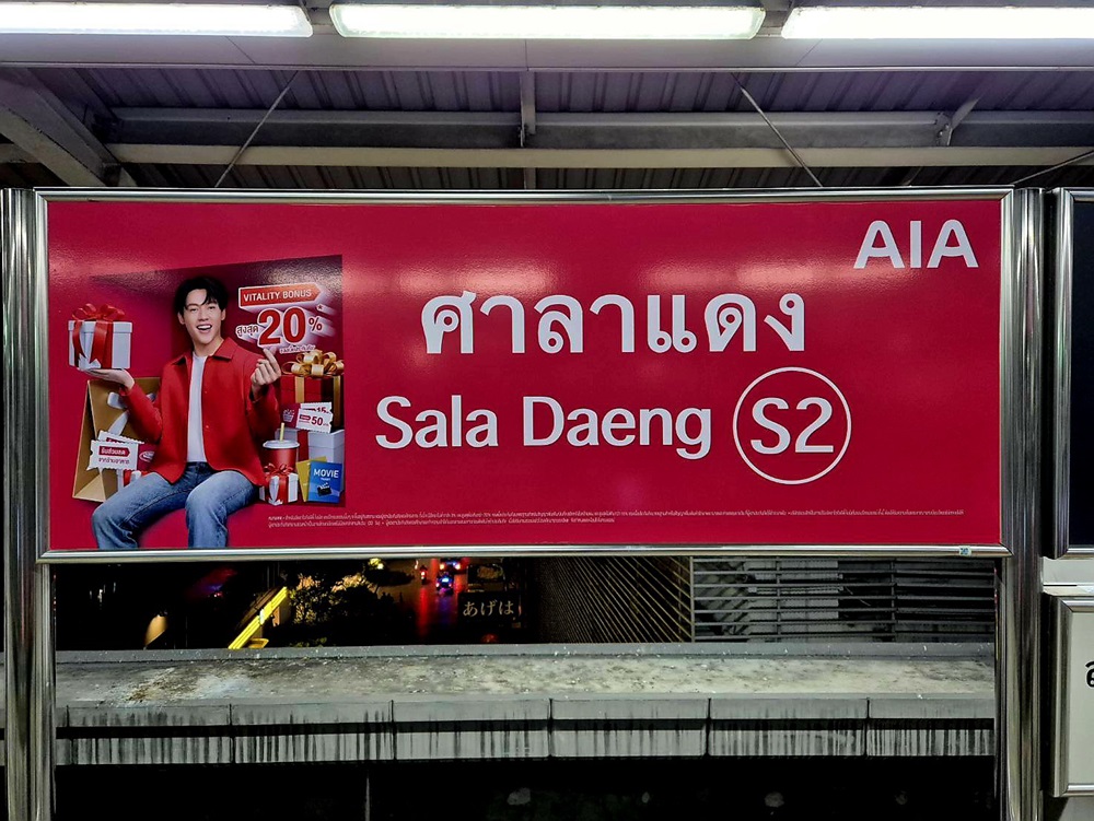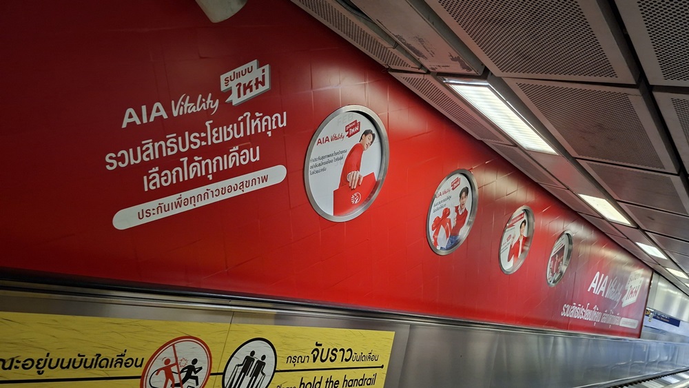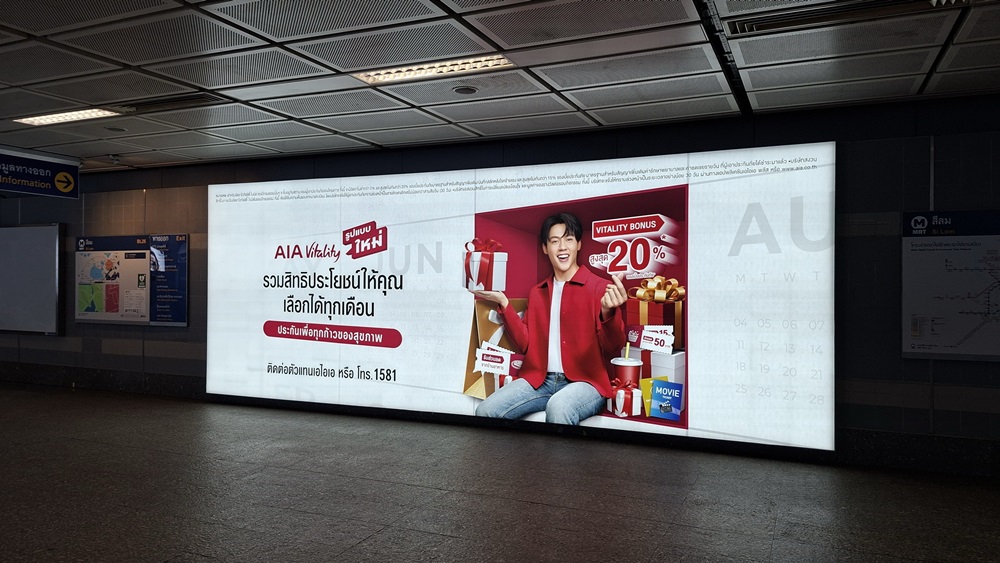 หนึ่งในไฮไลต์สำคัญ คือสื่อบิลบอร์ดยักษ์บริเวณสถานีรถไฟฟ้าใจกลางกรุงเทพฯ ที่ได้ AIA Vitality Ambassador ‘หมาก ปริญ สุภารัตน์’ มาเติมพลังด้วยท่า “หัวใจสุขภาพดี” เพื่อชวนคนเมืองลุกขึ้นมาขยับแบบง่าย ๆ ในทุกวัน พร้อมส่งข้อความ “AIA Vitality รูปแบบใหม่ รวมสิทธิประโยชน์ให้คุณเลือกได้ทุกเดือน” ด้วย Monthly Rewards และ Vitality Bonus สูงสุด 20% ของเบี้ยประกันภัย* ให้คนไทยได้ทั้งความคุ้มค่าและสุขภาพดีไปพร้อมกัน ตามคำมั่นสัญญา ‘Healthier, Longer, Better Lives – เพื่อสุขภาพและชีวิตที่ดีขึ้น’