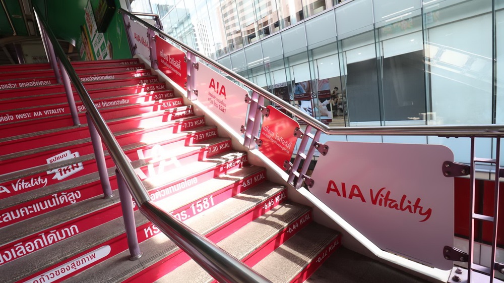 นอกจากนี้ AIA Vitality ยังสร้างสีสันด้วย “บันไดสุขภาพ” ที่ปรากฏตัวตามจุดเดินเชื่อมรถไฟฟ้า นำเสนอจำนวนแคลอรีที่เผาผลาญได้ในแต่ละขั้น ชวนให้ทุกคนเลือกเดินมากขึ้น สนุกกับการขยับ และเห็นคุณค่าของการดูแลสุขภาพตั้งแต่เรื่องเล็ก ๆ ใกล้ตัว สะท้อนถึงแนวคิด ‘RETHINK HEALTHY’ สุขภาพดี ไม่ต้องยากอย่างที่คิด เพียงแค่เปลี่ยนพฤติกรรมเล็กน้อยในแต่ละวัน สามารถสร้างสุขภาพที่ดีได้ทันที