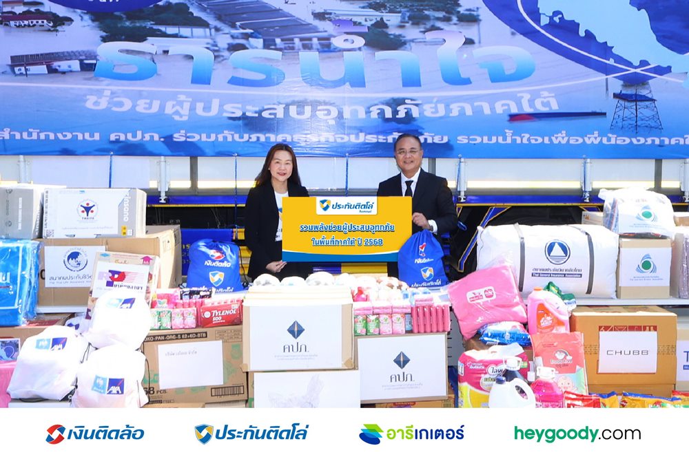 “ประกันติดโล่” โบรกเกอร์ บริหารโดย บมจ. เงินติดล้อ โดย นางสาวนิภา วนิชวัฒน์ ผู้บริหารระดับสูง สายงานกิจกรรมเพื่อสังคม ร่วมมือกับ สำนักงานคณะกรรมการกำกับและส่งเสริมการประกอบธุรกิจประกันภัย (คปภ.) ส่งมอบถุงยังชีพเพื่อช่วยเหลือและบรรเทาความเดือดร้อนของประชาชนในพื้นที่ภาคใต้ที่ได้รับผลกระทบจากอุทกภัย ปี 2568 โดยมี นายชูฉัตร ประมูลผล เลขาธิการ สำนักงาน คปภ. ให้เกียรติเป็นผู้รับมอบ