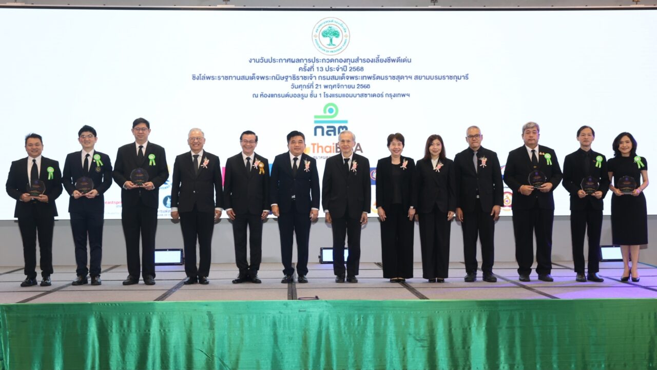 จากนายปิยกร อภิบาลศรี หัวหน้าผู้ตรวจราชการกระทรวงการคลัง ภายในงานประกาศผลการประกวดกองทุนสำรองเลี้ยงชีพดีเด่น ครั้งที่ 13 ประจำปี 2568 ซึ่งสมาคมกองทุนสำรองเลี้ยงชีพจัดขึ้น โดยมีคณะผู้บริหาร และคณะกรรมการกองทุนสำรองเลี้ยงชีพธนาคารออมสิน ร่วมแสดงความยินดี