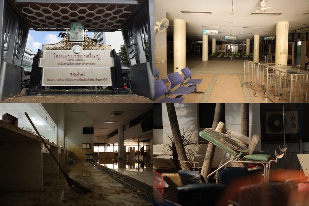 รวมทั้งการมุ่งเน้นช่วยเหลือฟื้นฟูโรงพยาบาล โรงเรียน ชุมชน และโครงสร้างพื้นฐานสำคัญ โดยเฉพาะโรงพยาบาลหาดใหญ่ ซึ่งเป็นโรงพยาบาลศูนย์กลางการแพทย์ระดับภูมิภาคและมีความสำคัญต่อภาคใต้ตอนล่าง ที่ได้รับความเสียหายอย่างหนักมูลค่าเกือบพันล้านบาท โดยส่วนใหญ่เกิดกับเครื่องมือแพทย์มูลค่าสูงที่ตั้งอยู่บริเวณชั้นล่างของอาคาร ซึ่งขณะนี้อยู่ระหว่างทีมผู้เชี่ยวชาญสำรวจประเมินโดยละเอียด เพื่อเสนอขอรับการสนับสนุนงบกลางจากรัฐบาลต่อไป