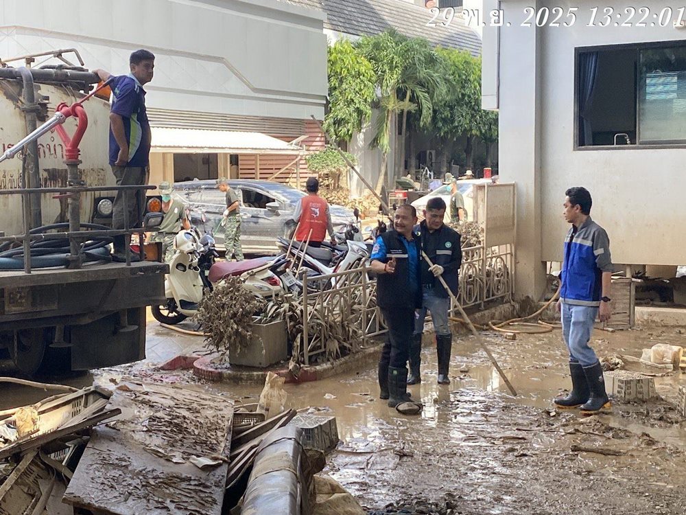 ด้านการซ่อมแซม ได้สนับสนุน Fix It Center จำนวน 46 จุด ร่วมกับวิทยาลัยเทคนิคหาดใหญ่ เพื่อซ่อมเครื่องใช้ไฟฟ้าและอุปกรณ์ที่จำเป็นของประชาชน (วันที่ 29 พฤศจิกายน – 6 ธันวาคม 2568) พร้อมทั้งสนับสนุนหลังคาไฟเบอร์ซีเมนต์บอร์ด สีทาบ้าน ประตู อุปกรณ์ต่าง ๆ ให้โรงพยาบาลและโรงเรียน ส่วน “คิวช่าง” จะสำรวจบ้านฟรีภายในวันที่ 10 ธันวาคม 2568 นอกจากนั้นยังจัดทำคู่มือดูแลบ้าน “หลังน้ำลด” เพื่อให้ประชาชนสามารถซ่อมแซมบ้านได้อย่างถูกต้องและปลอดภัย โดยดาวน์โหลดได้ที่ https://shorturl.at/koILu