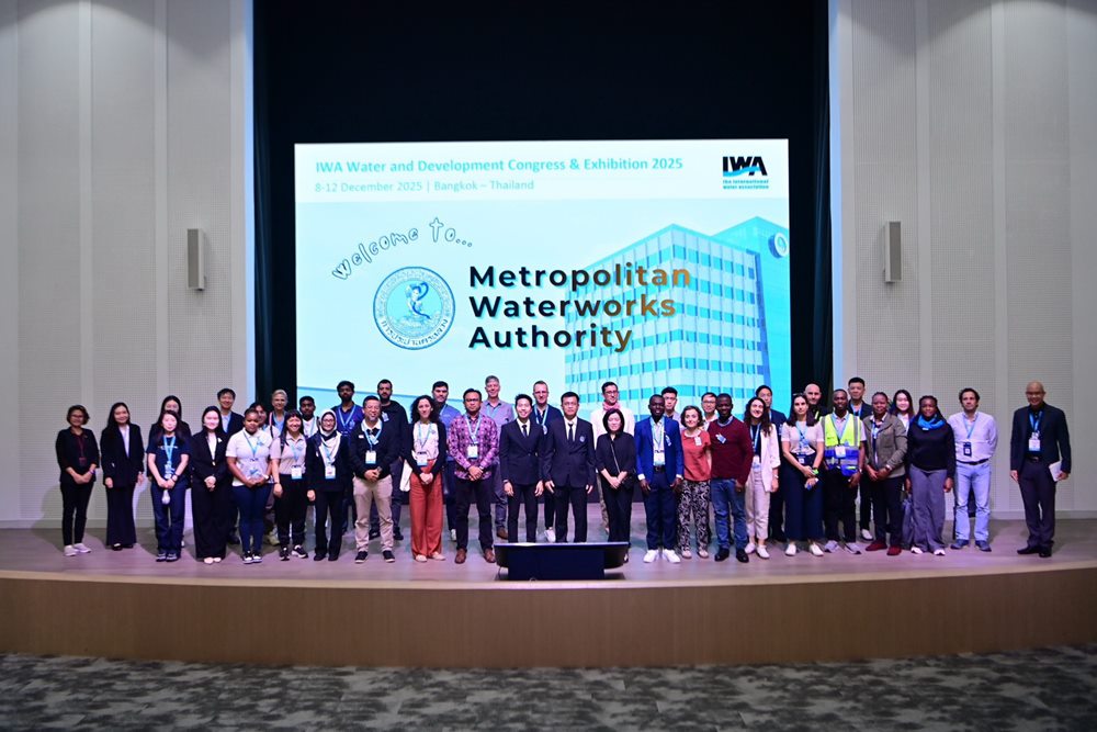 นายพรศักดิ์ สมรไกรสรกิจ ผู้ช่วยผู้ว่าการ (แหล่งน้ำและคุณภาพน้ำ) รักษาการในตำแหน่งรองผู้ว่าการ (ผลิตน้ำ) ให้การต้อนรับคณะผู้แทนจากสมาคมน้ำระหว่างประเทศ (International Water Association: IWA) ในโอกาสเยี่ยมชมและศึกษาดูงานเชิงเทคนิค (Technical Visit) ณ โรงงานผลิตน้ำบางเขน และฝ่ายคุณภาพน้ำของ กปน. ซึ่งเป็นส่วนหนึ่งของกิจกรรมภาคสนามภายใต้การประชุมและนิทรรศการระดับโลก Water & Development Congress & Exhibition 2025 (WDCE 2025) จัดขึ้นระหว่างวันที่ 8–12 ธันวาคม 2568