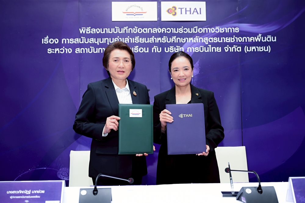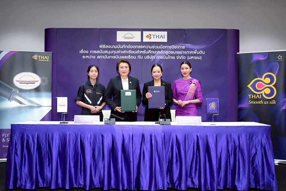 บริษัท การบินไทย จำกัด (มหาชน) และสถาบันการบินพลเรือน (สบพ.) ได้ลงนามบันทึกข้อตกลงความร่วมมือสนับสนุนทุนค่าเล่าเรียนสำหรับศึกษาหลักสูตรนายช่างภาคพื้นดิน ซึ่งเป็นหลักสูตรตามมาตรฐานสำนักงานการบินพลเรือนแห่งประเทศไทย (Civil Aviation Authority of Thailand : CAAT) โดยมี คุณจันทริกา โชติกเสถียร ประธานเจ้าหน้าที่สายทรัพยากรบุคคล บริษัท การบินไทยฯ และคุณภัคณัฏฐ์ มากช่วย ผู้ว่าการสถาบันการบินพลเรือน ร่วมลงนามในพิธี