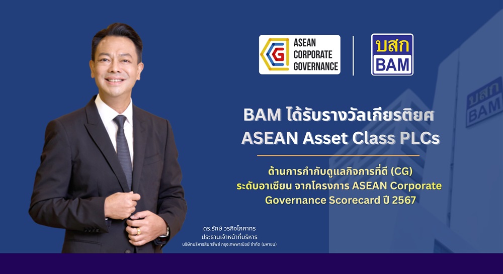 บริษัทบริหารสินทรัพย์ กรุงเทพพาณิชย์ จำกัด (มหาชน) หรือ BAM ยกระดับการดำเนินงานด้าน CG สู่ระดับอาเซียน คว้ารางวัล ASEAN Asset Class PLCs จากโครงการ ASEAN CG Scorecard ประจำปี 2567  BAM ได้รับการประเมินการกำกับดูแลกิจการที่ดีของบริษัทจดทะเบียน จากโครงการ ASEAN Corporate Governance Scorecard (ASEAN CG Scorecard) ประจำปี 2567 โดยได้รับรางวัลในประเภท ASEAN Asset Class PLCs