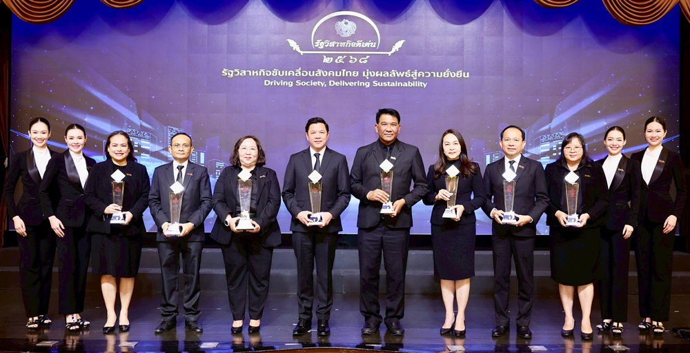 นายเอกนิติ นิติทัณฑ์ประภาศ รองนายกรัฐมนตรีและรัฐมนตรีว่าการกระทรวงการคลัง มอบรางวัลรัฐวิสาหกิจดีเด่น (SOE Awards) ประจำปี 2568 ให้แก่ธนาคารออมสิน โดยมีผู้แทนรับมอบรางวัลได้แก่