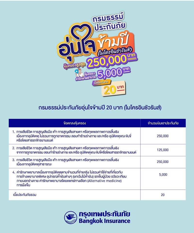 • กรมธรรม์ประกันภัยอุ่นใจข้ามปี 20 บาท (ไมโครอินชัวรันส์)