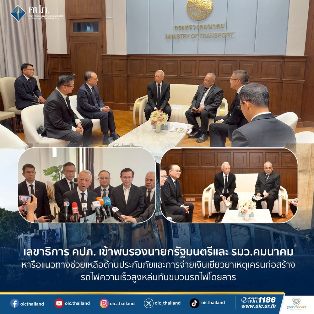 เลขาธิการ คปภ. เข้าพบรองนายกรัฐมนตรีและ รมว.คมนาคม หารือแนวทางช่วยเหลือด้านประกันภัยและการจ่ายเงินเยียวยา เหตุเครนก่อสร้างรถไฟความเร็วสูงหล่นทับขบวนรถไฟโดยสาร