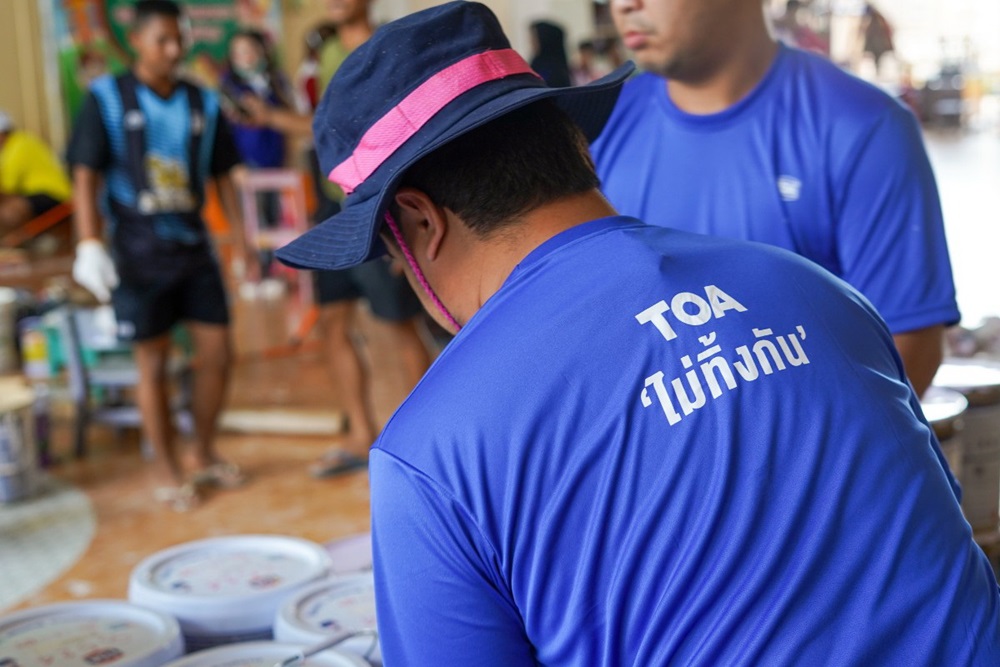 นอกจากการฟื้นฟูโรงพยาบาล TOA ยังได้ร่วมกับทหารจิตอาสา มณฑลทหารบกที่ 42 (ค่ายเสนาณรงค์) กองพลพัฒนาที่ 4 ค่ายรัตนพล นักศึกษาจากมหาวิทยาลัยสงขลานครินทร์ และมหาวิทยาลัยหาดใหญ่ ลงพื้นที่ โรงเรียนบ้านคลองหวะ (ทวีรัตนราษฎร์บำรุง) ร่วมกันทำความสะอาดและทาสีอาคารเรียนใหม่ เพื่อลบเลือนรอยคราบน้ำและฟื้นฟูบรรยากาศการเรียนรู้ที่สดใสด้าน นางณัชชา บุญสิริธนา ผู้อำนวยการโรงเรียนฯ เปิดเผยถึงสถานการณ์ที่ผ่านมาว่า เนื่องจากโรงเรียนตั้งอยู่ในพื้นที่ลุ่มต่ำ เมื่อเกิดเหตุอุทกภัยจึงทำให้น้ำไหลหลากเข้าท่วมอาคารเรียนและห้องเรียนอย่างรวดเร็ว ส่งผลให้วัสดุอุปกรณ์การเรียนการสอนได้รับความเสียหายอย่างหนัก รวมไปถึงตัวอาคารที่ทิ้งคราบสกปรกจากดินโคลนและมีสภาพสีหลุดล่อนอย่างเห็นได้ชัดสำหรับการได้รับความช่วยเหลือในครั้งนี้ ผอ.ณัชชา กล่าวว่า “ในนามของโรงเรียน ต้องขอขอบพระคุณ TOA เป็นอย่างสูงที่จัดโครงการ ‘TOA ไม่ทิ้งกัน’ โดยการระดมพลังจิตอาสา พร้อมนำผลิตภัณฑ์สีที่มีคุณภาพและอุปกรณ์ต่างๆ มาช่วยฟื้นฟูและทาสีอาคารเรียนให้กับพวกเราใหม่ กิจกรรมในวันนี้ไม่ได้เป็นเพียงการซ่อมแซมสถานที่ให้กลับมาสวยงามดังเดิมเท่านั้น แต่ยังเป็นการสร้างขวัญและกำลังใจที่สำคัญยิ่งให้กับคณะครู บุคลากร และนักเรียนทุกคน ที่จะได้กลับมาทำการเรียนการสอนในสภาพแวดล้อมที่สะอาด ปลอดภัย และสดใสอีกครั้ง”