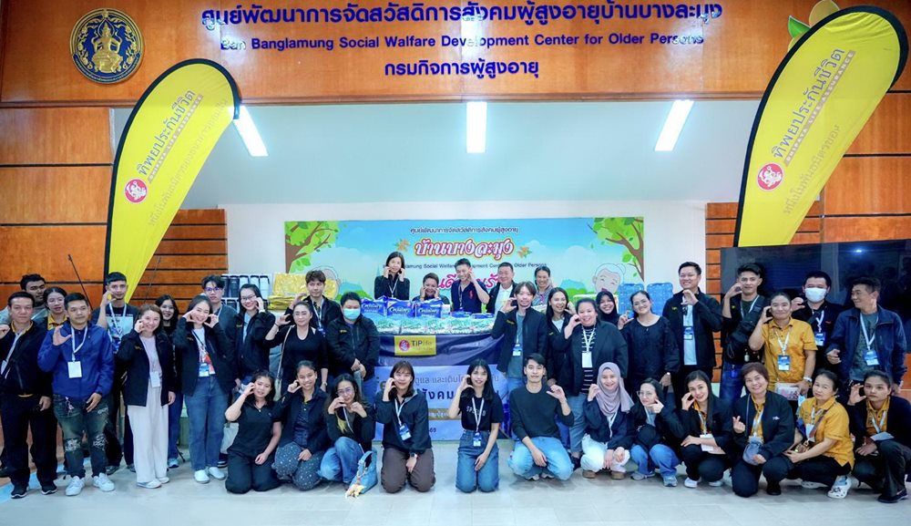 บริษัท ทิพยประกันชีวิต จำกัด (มหาชน) นำโดยคุณพุทธรักษ์ ทิพชัชวาลวงศ์ ผู้ช่วยประธานเจ้าหน้าที่บริหารสายงานคณิตศาสตร์ประกันภัย (ตรงกลาง) พร้อมคณะผู้บริหารและพนักงานร่วมส่งความสุขแบ่งปันรอยยิ้ม มอบสิ่งของเครื่องใช้ที่จำเป็นต่อการใช้ชีวิตของผู้สูงอายุ ให้แก่คุณอรอุมา อินทฉาย ผู้อำนวยการ ศูนย์พัฒนาการจัดสวัสดิการสังคมผู้สูงอายุบ้านบางละมุง เพื่อสนับสนุนและส่งเสริมการดูแลผู้สูงอายุในความของศูนย์ฯ และในพื้นที่ความรับผิดชอบ ณ ศูนย์พัฒนาการจัดสวัสดิการสังคมผู้สูงอายุบ้านบางละมุงจังหวัดชลบุรี