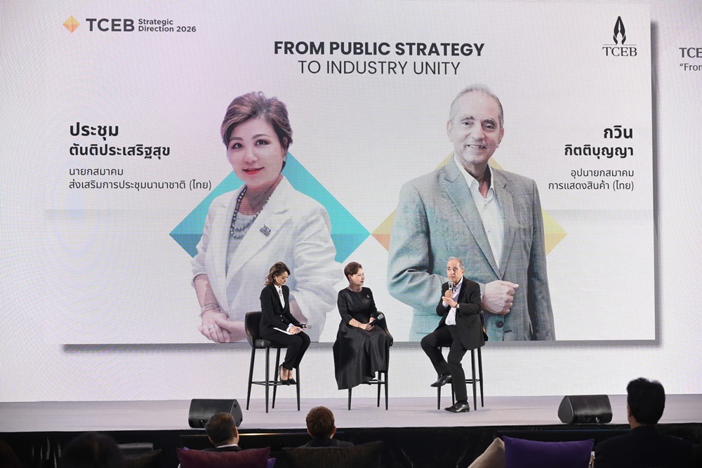 ทีเส็บ เดินหน้าขับเคลื่อนอุตสาหกรรมไมซ์ไทยปี 2569 เปิดตัวทิศทางแผนงานประจำปี TCEB Strategic Direction 2026 ภายใต้แนวคิด From Change that Matters to Impact that Lasts ใช้ผล Brand Insights จับอุตสาหกรรมจุดแข็งของไทยปั้นเป็นจุดขายระดับชาติและระดับภูมิภาค ผลักดันมาตรฐานรับรองการจัดงานอย่างยั่งยืน มุ่งพัฒนา Data, Intelligence และนวัตกรรมขับเคลื่อนการทำตลาด จับมือหน่วยงานภาครัฐเพิ่มความยืดหยุ่นกฎระเบียบการจัดงาน ตั้งเป้าไมซ์ไทยโต 10%