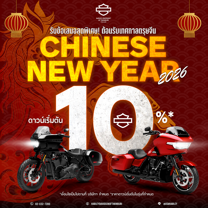 ยูเอส มอเตอร์ไบค์ ผู้จำหน่ายมอเตอร์ไซค์ ฮาร์ลีย์-เดวิดสัน อย่างเป็นทางการในประเทศไทย ภายใต้บริษัท มิลเลนเนียม กรุ๊ป คอร์ปอเรชั่น (เอเชีย) จำกัด (มหาชน) หรือ MGC-ASIA เฉลิมฉลองเทศกาลตรุษจีน มอบข้อเสนอสุดพิเศษ ดาวน์เริ่มต้น 10% และฟรีคอร์สเรียนขับขี่บิ๊กไบค์ โดยผู้เชี่ยวชาญจาก ฮาร์ลีย์-เดวิดสัน ประเทศไทย พร้อมโปรโมชั่นสินค้าเสื้อผ้า อะไหล่ ของแต่งรถ และบริการ วันนี้ถึง 28 กุมภาพันธ์ 2569