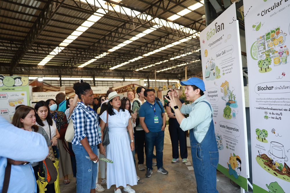 นางสาวพรหมกร พรหมขัติแก้ว ผู้ช่วยผู้จัดการธนาคารเพื่อการเกษตรและสหกรณ์การเกษตร (ธ.ก.ส.) นำคณะผู้บริหารสมาคมสินเชื่อการเกษตรและชนบทแห่งภาคพื้นเอเชียและแปซิฟิก Asia-Pacific Rural and Agricultural Credit Association หรือ APRACA และคณะกรรมการบริหารสมาคมสินเชื่อเกษตรและชนบทแห่งภาคพื้นแอฟริกา African Rural and Agricultural Credit Association หรือ AFRACA ซึ่งประกอบด้วย ผู้บริหารระดับสูงของสถาบันการเงิน องค์กรการเงิน ธนาคารกลาง และธนาคารเพื่อการพัฒนาในประเทศสมาชิก อาทิ Agricultural Development Bank of China (ADBC) Japan Finance Corporation (JFC) Bhutan Development Bank Limited (BDB) และ Bangko Sentral ng Pilipinas ลงพื้นที่ศึกษาดูงานและเยี่ยมชมกิจการของเกษตรกรลูกค้า ธ.ก.ส. ในพื้นที่จังหวัดนครปฐมและจังหวัดราชบุรี เพื่อแลกเปลี่ยนเรียนรู้แนวทางการพัฒนาอาชีพเกษตร การบริหารจัดการธุรกิจเกษตรสมัยใหม่ และการสร้างมูลค่าเพิ่มให้กับผลผลิตทางการเกษตรอย่างยั่งยืน ได้แก่ Lemon Me Farm จังหวัดนครปฐม ฟาร์มเกษตรผสมผสานที่ประสบความสำเร็จในการปลูกและแปรรูปเลมอนและมะนาว โดยนำองค์ความรู้ เทคโนโลยี และนวัตกรรมมาประยุกต์ใช้ในการบริหารจัดการฟาร์ม ตั้งแต่กระบวนการผลิต การควบคุมคุณภาพ ไปจนถึงการพัฒนาผลิตภัณฑ์แปรรูปและการตลาด อาทิ เปลือกมะนาวโรล เปลือกมะนาวแช่ชะเอม รวมถึงยกระดับฟาร์มเลมอนไปสู่การเป็นสถานที่ท่องเที่ยวอย่างคาเฟ่ ที่เปิดโอกาสให้นักท่องเที่ยวได้เข้าไปเยี่ยมชมและสัมผัสประสบการณ์การท่องเที่ยวเชิงเกษตร ซึ่งเป็นตัวอย่างของเกษตรกรรุ่นใหม่ที่สามารถต่อยอดธุรกิจเกษตรให้เติบโตและสร้างรายได้อย่างมั่นคง