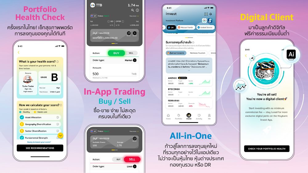 เมย์แบงก์ ประเทศไทย เดินหน้ากลยุทธ์ Digital Wealth Platformเปิดตัวแอปพลิเคชัน Maybank Invest เวอร์ชันใหม่ หนุนการลงทุนแบบ Multi-Asset มุ่งบริหารพอร์ตเพื่อความมั่งคั่งระยะยาว