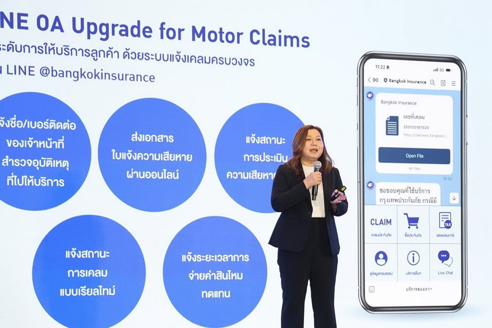 - LINE OA Upgrade for Motor Claims ยกระดับการให้บริการลูกค้าด้วยระบบแจ้งเคลมรถยนต์แบบครบวงจรผ่าน LINE @bangkokinsurance เพื่อเพิ่มความสะดวก รวดเร็ว และเสริมความอุ่นใจให้แก่ลูกค้า โดยสามารถรับทราบข้อมูลสำคัญต่างๆ จากการเคลมประกันภัยรถยนต์ได้อย่างต่อเนื่อง เช่น การแจ้งชื่อและเบอร์โทรศัพท์ของเจ้าหน้าที่สำรวจอุบัติเหตุที่จะเดินทางเข้าไปดูแล การส่งเอกสารใบแจ้งความเสียหายผ่านช่องทางออนไลน์ การแจ้งสถานะการประเมินความเสียหายของรถยนต์ ตลอดจนการติดตามสถานะการเคลมแบบเรียลไทม์ พร้อมทั้งแจ้งระยะเวลาการซ่อมและการจ่ายค่าสินไหมทดแทน นอกจากนี้ บริษัทฯ อยู่ระหว่างการพัฒนา LINE OA for Partners เพื่อช่วยอำนวยความสะดวกและสนับสนุนการทำงานของตัวแทนและนายหน้า ให้มีความคล่องตัวและบริหารจัดการได้ดียิ่งขึ้น ซึ่งจะนำไปสู่การดูแลลูกค้าได้อย่างรวดเร็วและเต็มประสิทธิภาพ