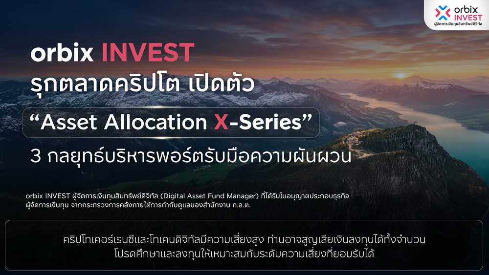 orbix INVEST ผู้จัดการเงินทุนสินทรัพย์ดิจิทัล เปิดตัวผลิตภัณฑ์ใหม่ “Asset Allocation X-Series” ชุดกลยุทธ์การจัดสรรสินทรัยพ์ดิจิทัล 3 รูปแบบ ได้แก่ Explore กลยุทธ์จัดการเงินทุนสำหรับผู้เริ่มต้นหรือผู้ที่ต้องการกระจายความเสี่ยง Expand กลยุทธ์เน้นการเติบโตแบบสมดุล สร้างผลตอบแทนควบคู่ไปกับการบริหารความเสี่ยงที่ดี  และ Extreme กลยุทธ์เชิงรุกสำหรับผู้ที่รับความผันผวนได้สูง มุ่งเพิ่มโอกาสรับผลตอบแทนสูงสุดจากสินทรัพย์ดิจิทัลที่มีปัจจัยพื้นฐานแข็งแกร่ง ตอบโจทย์นักลงทุนที่ต้องการบริหารพอร์ตอย่างเป็นระบบ ท่ามกลางความผันผวนสูงของตลาดคริปโต ชูจุดเด่นพอร์ตยืดหยุ่นตามสถานการณ์ ปรับเปลี่ยนพอร์ตได้ตามความเหมาะสม ที่ช่วยลดความเสี่ยงจากปัจจัยที่แตกต่าง พร้อมเปิดโอกาสให้เริ่มลงทุนด้วยเงินขั้นต่ำเพียง 10,000 บาท