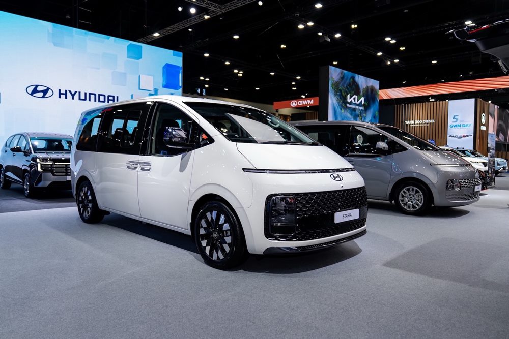 ในกลุ่มรถครอบครัวขนาดใหญ่ Hyundai Staria (Euro 5) MPV ดีไซน์ล้ำภายใต้แนวคิด Space Innovation โดดเด่นด้วยห้องโดยสารขนาดใหญ่ รองรับสูงสุด 11 ที่นั่ง พร้อมความสะดวกสบายครบครัน และสมรรถนะเครื่องยนต์ดีเซล 2.2 ลิตร ที่ให้การขับขี่นุ่มนวล รองรับทั้งการใช้งานครอบครัวและเชิงธุรกิจได้อย่างลงตัว โดยภายในงานมาพร้อมข้อเสนอที่คุ้มค่าอย่างยิ่ง ลูกค้าสามารถเลือกรับ ดอกเบี้ย 0% ดาวน์ 25% ผ่อนสูงสุด 48 เดือน(1) หรือโปรโมชันช่วยผ่อนเดือนละ 12,500 บาท นาน 24 งวด(1) รวมมูลค่า 300,000 บาท หรือเลือกรับ ส่วนลดเงินสดสูงสุด 400,000 บาท(1) พร้อมช่วยค่าน้ำมันเพิ่มอีก 30,000 บาท พร้อมสิทธิประโยชน์หลังการขายครบ ทั้งฟรีประกันภัยชั้นหนึ่ง 1 ปี รับประกันคุณภาพรถยนต์ 5 ปี หรือ 150,000 กิโลเมตร และบริการช่วยเหลือฉุกเฉิน 5 ปีเต็ม เพื่อมอบความคุ้มค่าและความมั่นใจในการใช้งานในระยะยาว