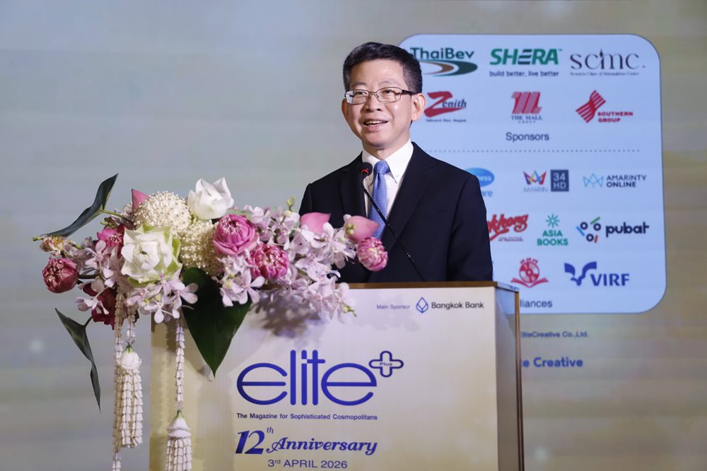 บรรยากาศแห่งความยินดีมาบรรจบกันในค่ำคืนของวันที่ 3 เมษายน 2569 ณ งานกาล่า ‘Elite Plus Magazine 12th Anniversary Gala Celebration’ โดยงานนี้ได้รับเกียรติจาก ดร.กอบศักดิ์ ภูตระกูล กรรมการรองผู้จัดการใหญ่ ธนาคารกรุงเทพ จำกัด (มหาชน) กล่าวเปิดงานและแสดงความยินดีต่อหมุดหมายสำคัญนี้ว่า “ในนามของธนาคารกรุงเทพ ผมขอแสดงความยินดีกับนิตยสาร Elite+ ที่ก้าวสู่หมุดหมายสำคัญครบรอบ 12 ปี สิ่งที่น่าประทับใจคือความสามารถในการปรับตัวท่ามกลางยุคดิจิทัลดิสรัปชัน เพื่อส่งต่อข้อมูลข่าวสารให้แก่พวกเราอย่างต่อเนื่อง โดยเฉพาะผ่านช่องทางออนไลน์ที่เติบโตขึ้น”