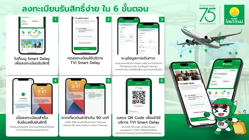 ลูกค้าสามารถใช้สิทธิ์ TVI Smart Delay ได้อย่างสะดวกผ่านแอปพลิเคชัน Thaivivat เพียงลงทะเบียนเที่ยวบินล่วงหน้าอย่างน้อย 24 ชั่วโมง ระบบจะตรวจสอบสถานะเที่ยวบินแบบอัตโนมัติ และเมื่อเกิดการดีเลย์ตามเงื่อนไข ลูกค้าจะได้รับ QR Code เพื่อเข้าใช้บริการ Lounge ได้ทันที รวมถึงสามารถจัดการข้อมูลผู้เดินทาง เพิ่ม-ลดรายชื่อ และตรวจสอบห้องรับรองได้ในแอปเดียว สะท้อนความเป็น Digital Convenience อย่างสมบูรณ์