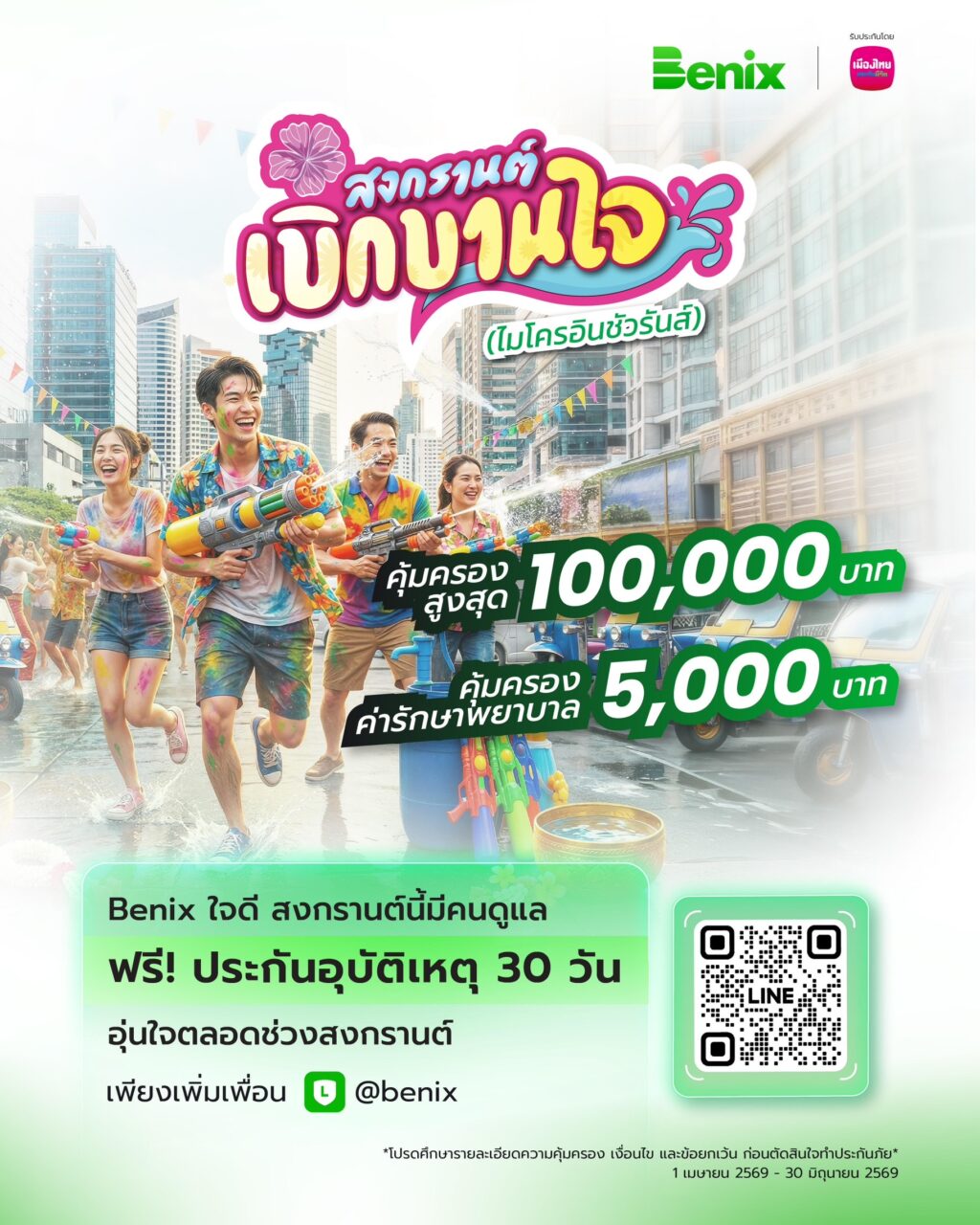 เมืองไทยประกันชีวิต จับมือ gettgo โบรกเกอร์ประกันออนไลน์ ส่งมอบความอุ่นใจตลอดช่วงสงกรานต์ ผ่าน “กรมธรรม์ประกันภัยสงกรานต์เบิกบานใจ (ไมโครอินชัวรันส์)” ประกันภัยอุบัติเหตุกลุ่มที่ให้ความคุ้มครองครอบคลุมทั้งด้านชีวิตและค่ารักษาพยาบาลเนื่องจากอุบัติเหตุ สูงสุด 100,000 บาท เพียงเพิ่มเพื่อนใน LINE Official Account@gettgo  เริ่มตั้งแต่วันที่ 1 เมษายน 2569 – 30มิถุนายน 2569