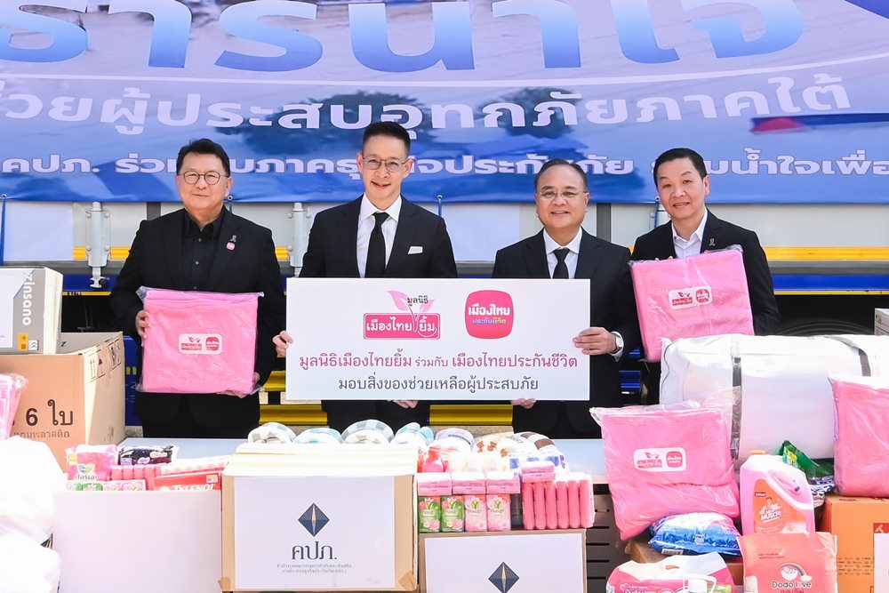บริษัท เมืองไทยประกันชีวิต จำกัด (มหาชน) และมูลนิธิเมืองไทยยิ้ม ร่วมสนับสนุนการช่วยเหลือ ผู้ประสบอุทกภัยในพื้นที่ภาคใต้ ผ่านโครงการ “ธารน้ำใจช่วยผู้ประสบภัยภาคใต้” ของสำนักงานคณะกรรมการกำกับและส่งเสริมการประกอบธุรกิจประกันภัย (คปภ.) โดยได้ส่งมอบผ้าห่มเพื่อช่วยบรรเทาความเดือดร้อนและสร้างขวัญกำลังใจให้แก่ประชาชนที่ได้รับผลกระทบจากสถานการณ์น้ำท่วม ในหลายจังหวัดภาคใต้
